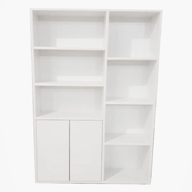 کتابخانه با ورق ملامینه درجه یک ضد خش و ضد رطوبت میباشد. نوار تمام پی وی سی به کار برده شده. کتابخانه به جای دستگیره ازمگنت فشاری برای باز بسته شدن آسان تر درب استفاده شده است. بسیار زیبا و کاربردی و جادار با استحکام کافی جهت دکور و کتاب میباشد.