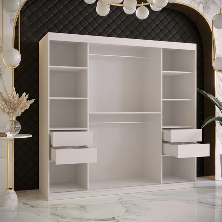 کمد لباس مدل 4671 جنس روکش از ملامینه میباشد و دارای چهار عدد کشو با ریل ساچمه ای با کیفیت و دارای دو رگال جهت آویز کردن لباس دارا میباشد و این کالا از استحکام و مقاومت بالایی برخوردار است و در رنگ بندی های زیبا و شکیل میباشد.