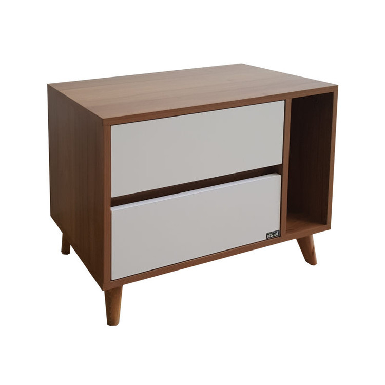 پاتختی صنعت و هنر چوبی کوتوک مدل پارولا دارای پایه های چوبی، یک باکس و دو کشو و صفحه به طول 65 سانتیمتر، فضای کافی را برای چیدن وسایل در اختیار شما قرار می دهد. جنس محصول ملامینه پویا میباشد.