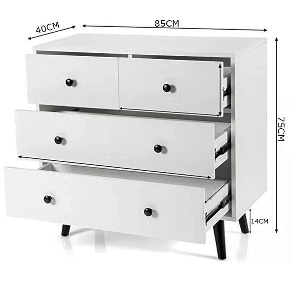 دراور چهار کشو مدل IKE4320 جنس روکش ملامینه ضد خش میباشد و کشو ها با ریل ساچمه ای با کیفیت دستگیره فلزی مستحکم در سه رنگ گردویی ، سفید و آنتیک طلایی زیبا و شکیل میباشد.
