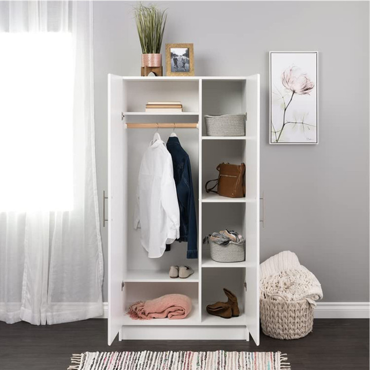 کمد لباس مدل IKE4770 جنس روکش از ملامینه دو درب دارای لولای آرام بند با کیفیت و قابلیت آویز کردن لباس در داخل کمد و دارای شش عدد طبقه و از استحکام و مقاومت بالایی برخوردار است و در رنگ بندی های زیبا و شکیل میباشد .