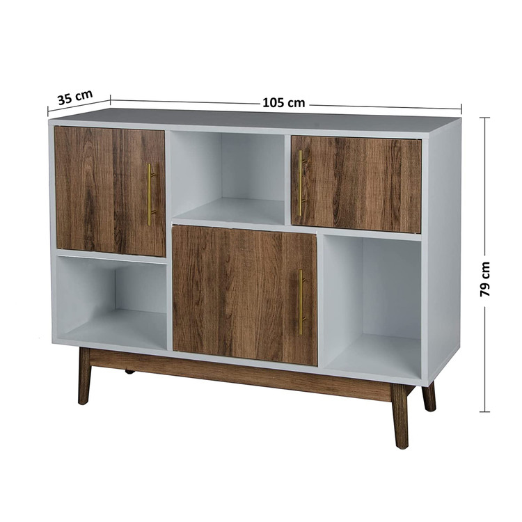 کنسول مدل IKE4904 جنس روکش از ملامینه ضد خش میباشد و دارای سه درب که دربها دارای لولای آرام بند باکیفیت و دستگیره های مقاوم میباشند و همچنین استحکام این کنسول جهت کالاهای دکوراتیو و کتاب و ... مناسب است. چند رنگ شامل بدنه سفید و درب های قهوه ای روشن میباشد.