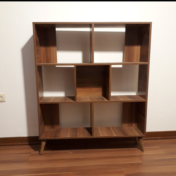 این کالا ساخته شده با ورق ملامینه می باشد که کاملا ضد خش است و از نوار PVC برای لبه های کتابخانه استفاده شده که در طراحی و دید کتابخانه نقش بسزایی دارد همچنین استحکام این کتابخانه جهت کالاهای دکوراتیو و کتاب مناسب است