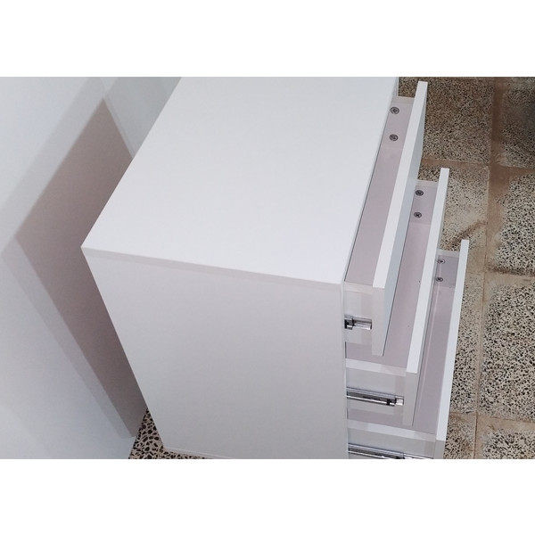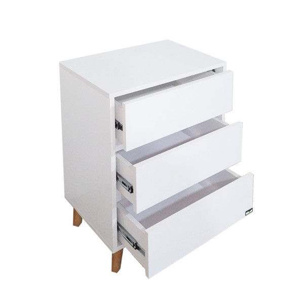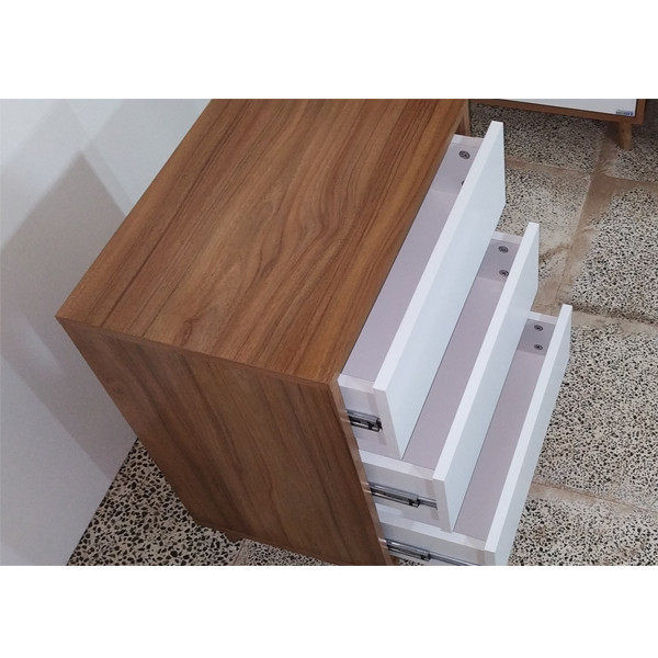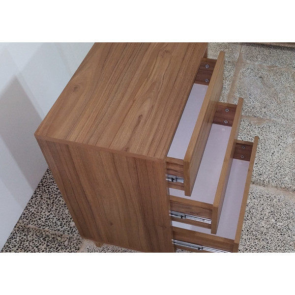- جنس درب و بدنه ملامینه پویا - دارای 4 عدد پایه چوبی 10 سانتی - دارای سه کشو