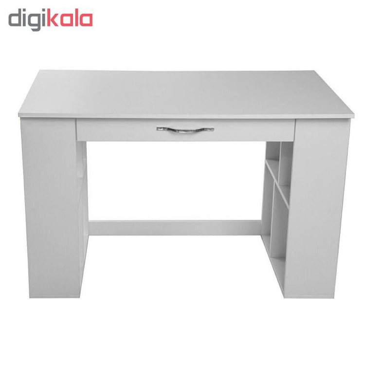 میز تحریرهای دو منظوره گروه تولیدی صنایع دکورا با طراحی خوب خودشون دو نیاز شما رو همزمان در یک محصول برآورده کردند. در واقع با تهیه این محصول هم صاحب میزتحریر میشید و هم کتابخانه. نکته ای که باید بهش توجه کنید این هست که در تمام تولیدات این شرکت از ورق ام دی اف مرغوب استفاده شده که این عامل خودش باعث ماندگاری بالا و کیفیت خوب محصولاتشون شده. لبه کارهاشون با pvc با ضخامت دو میلی متر کاور شده که این خودش باعث زیبایی و مقاومت بیشتر اجزاء کار در برابر ضربه شده. در طراحی و ساخت این محصول به جنبه های زیبایی شناختی و کاربردی توجه زیادی شده. این میز تحریر در مدلهای کشو دار،طاقچه تک،طاقچه دوبل هم تولید شده که شما بر اساس نیازتون میتونین بهترین مدل رو انتخاب کنین. میز تحریر مدل M 151 از سری میزهای دومنظوره شرکت صنایع دکورا میباشد. این میز دارای صفحه ای از جنس ام دی اف مرغوب ضدخش بوده که با اندازه 120×60 محیط مناسبی برای انجام کارهای مختلف رو براتون ایجاد کرده است. بدنه های این میز با عرض 20 سانت فضای مناسب و امنی رو برای گذاشتن کتاب و وسایل براتون ایجاد کرده. طراحی بدنه ها به شکلی انجام گرفته که از هر دو سمت قابل دسترسی هستند و حتی اگه این میز رو در کنج دیوار هم قرار بدین باز هم از داخل دسترسی به کتابخانه ها خواهید داشت. کشو 10 سانتی تعبیه شده در زیر صفحه میز با ریلهای سه زمانه ساچمه ای فضای مناسبی رو برای قرار دادن وسایل ضروری براتون ایجاد کرده. این کشو با داشتن یک دستگیره استیل مدرن نمای زیبایی رو به کل محصول بخشیده.