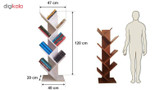 کتابخانه طرح درختی تمام ام دی اف و بسیار مستحکم و پایدار است. این کتابخانه با ابعاد ۲۲ × ۴۷ × ۱۲۰ سانتیمتر و 7 طبقه برای قرارگیری کتاب، به گونهای طراحی شده که سطح اتکای کافی و استحکام بالایی داشته باشد و در ضمن برای قراگیری کتابها فضای قابل قبولی را ارائه دهد. این کتابخانه در چهار رنگ "قهوهای (گردویی)" ، "سفید"، "کرم (رنگ چوب راش)" و "قهوهای تیره (قهوهای سوخته یا ونگه) " موجود است. این محصول به نسبت فضای کمی که اشغال میکند گنجایش زیادی برای قرارگیری کتاب دارد.