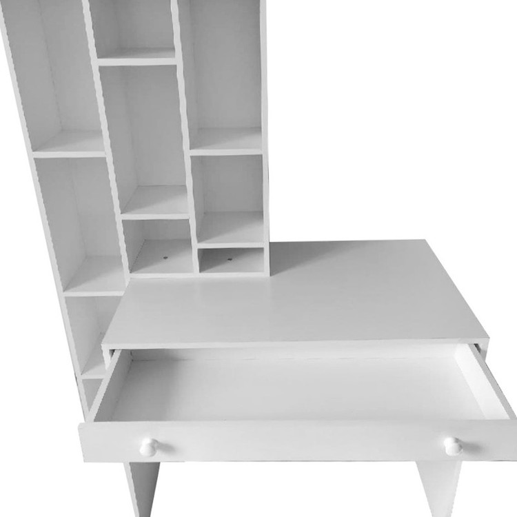 میز تحریر مدل مهسا یک میز زیبا و با دوام است.این میز به جهت سهولت در حمل و نقل و استفاده، به صورت دو تکه طراحی و ساخته شده است به گونه ای که می توان میز و کتابخانه را از یکدیگر جدا نمود.کتابخانه دارای طبقاتی با عمق 25 سانتی متر بهترین گزینه برای نظم دهی به کتاب ها و وسایل می باشد.کشو میز با ابعاد 30x100 سانتی متر دارای ریل های ساچمه ای مقاوم است جهت نگهداری وسایل شما می باشد.جنس این میز از نئوپان ملامینه و مقاوم در برابر گرما،رطوبت،خط و خش و آسیب دیدگی حشرات می باشد.
