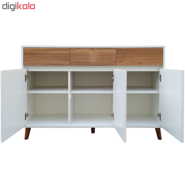 جنس بدنه و درب ملامینه ضد خش دارای سه باکس با طبقه متحرک و پایه های 10 سانتی چوبی