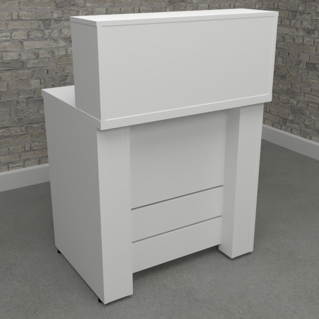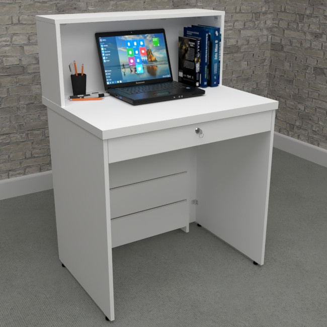 این محصول دارای یک کشو در ابعاد مفید 71x37 سانتی متر با ریل ساپمه ای 2 تکیه که کشوی آن نیز قفل دار است . پایه های میز به گونه ای طراحی شده که قابلیت تحمل وزن بیشتری را داشته باشد . نمای جلوی آن بوسیله ستونهایی که منتج به پانل میشوند این وظیفه را به عهده دارند . پانل بلند و سه تکیه , علاوه بر زیبایی باعث شده فضای زیر میز به راحتی قابل رویت نباشد . روی صفحه , کانتر با ارتفاع مفید 32 سانتی متر و عمق مفید 20 سانتی متر نصب گردیده است و نیز سوراخ با داکت پلاستیکی جهت عبور سیم تعبیه شده است . جنس این محصول از ورق ملامینه (ملامینه سازه پویا) و ضخامت نوار لبه های آن 2 میلی متر است