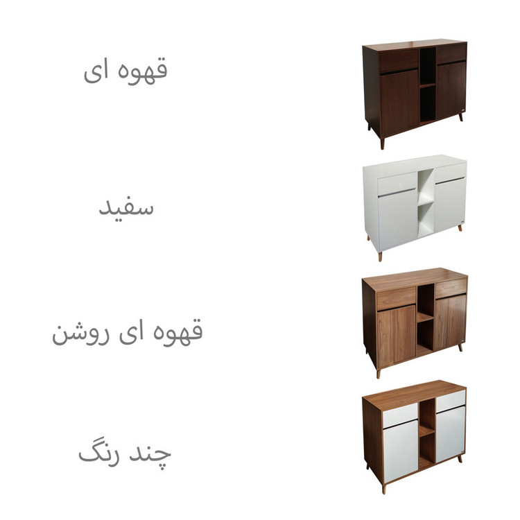 - جنس درب و بدنه ملامینه پویا - دارای 5 پایه چوبی 10 سانتی - دارای دو کشو و دو کابین و باکس بدون درب