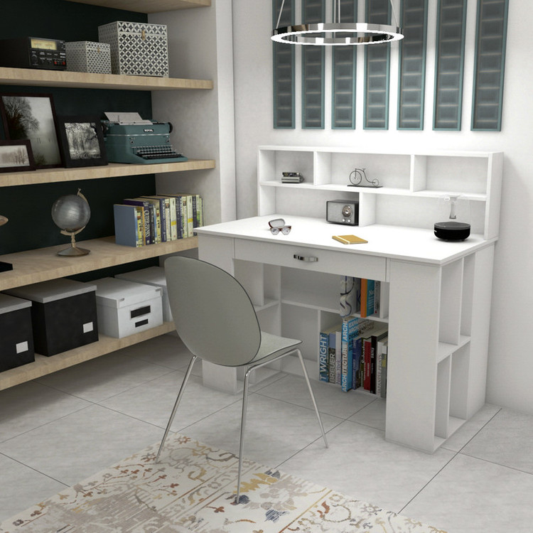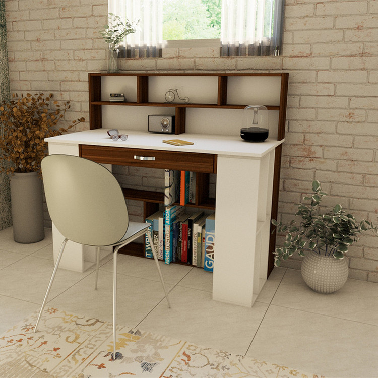 این میز تحریر به علت کتابخانه ای که در پشت میز قرار دارد نسبت به میز تحریر مدل M191 از استقامت و ایستایی بیشتری برخوردار است.همچنین برای کسانی که با کمبود جا مواجه هستند بسیار مفید است چرا که با سطح اشتغال کم فضای بیشتری را در اختیار کاربر قرار می دهد.