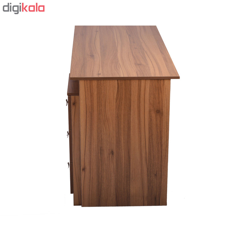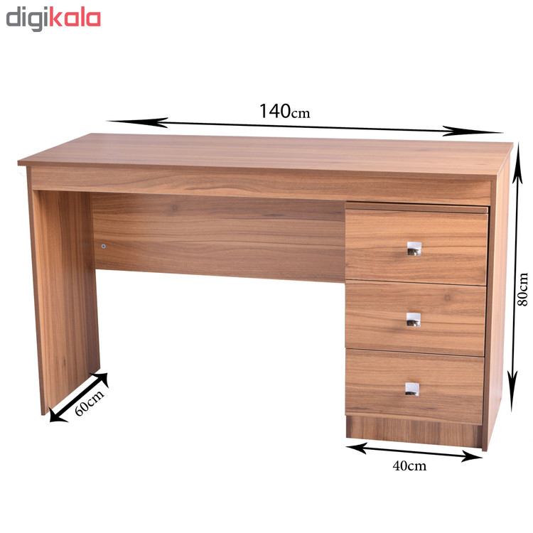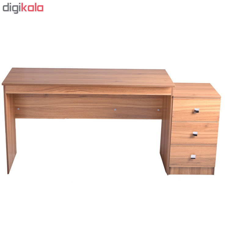 یکی از مشکلات اغلب استفاده کنندگان از میز های تحریر و اداری ، وزن سنگین برای حمل و نقل می باشد که در این مدل با مجزا کردن فایل و کشو ها از میز این مشکل رفع شده است به صورتیکه میز جدا و فایل به صورت جداگانه حمل می شوند و اپراتور می تواند فایل را در سمت چپ و یا راست میز به تناسب سلیقه ی خود قرار دهد و یا فایل را به صورت جدا از میز استفاده نماید. سایز میز: ارتفاع: 80cm ، طول: 140cm ، عرض: 60cm و فضای خالی بین فایل و بدنه ی میز 55 سانتی متر برای قرار گرفتن صندلی گردان می باشد. از ویژگی های این محصول می توان به ضدخش،ضدآب و ضد تینر بودن آن اشاره کرد. همچنین کلیه ی قطعات از MDF با روکش ملامینه ساخته شده اند و تمام قطعات با اتصالات الیت به یکدیدگر متصل شده اند.