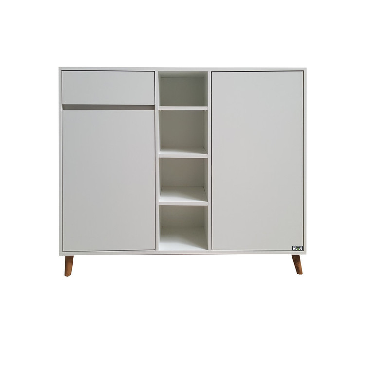 کنسول صنعت و هنر چوبی کوتوک مدل کارولینا دارای پایه های چوبی، دو باکس طبقه دار ، یک باکس چهار طبقه بدون درب ، یک کشو و صفحه به طول 130 سانتیمتر، فضای کافی را برای چیدن ظروف و آینه در اختیار شما قرار می دهد. جنس محصول ملامینه پویا میباشد.