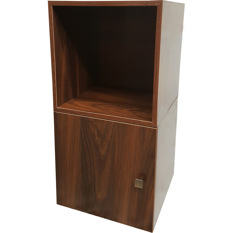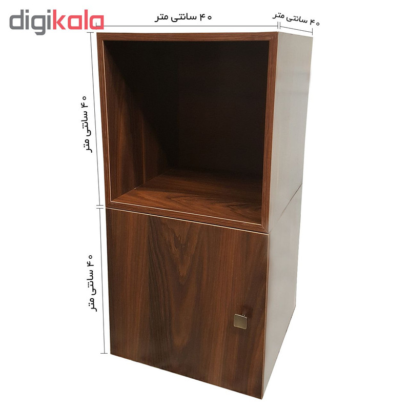 کتابخانه ای که ملاحظه می کنید از 2 عدد باکس کاملا مجزا از یکدیگر تشکیل شده که به شکل های مختلف می توان آن را چیدمان کرد ، ابعاد هر یک عدد باکس 40 × 40 × 40 سانتیمتر می باشد. یکی از این باکس ها دارای درب بوده و دیگری بدون درب می باشد. کاربری این محصول بسیار زیاد بوده و می توانید از آن در سالن پذیرایی منازل ، اتاق خواب ، دفاتر کار ، ویترین مغازه ، اتاق کودک و .... جاهای مختلف استفاده کنید. به دلیل مجزا بودن هر باکس از یکدیگر میتواند به شکل های بسیار متنوعی آن را چیدمان کنید. میتوانید از آن به عنوان یک میز پاتختی ، کتابخانه کوچک ، میز تلویزیون ، قفسه دکوری تزئینی و .... تلفیقی از همه این موارد استفاده کرد. جنس به کار رفته در این محصول از بهترین نوع MDF موجود در بازار بوده و تمامی لبه ها از بهترین جنس PVC استفاده شده ، تمامی لولا ها و دستگیره ها از مرغوبترین متریال موجود در بازار مورد استفاده قرار گرفته است. این محصول بی نیاز از مونتاژ توسط خریدار بوده و کاملا آماده استفاده می باشد.
