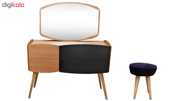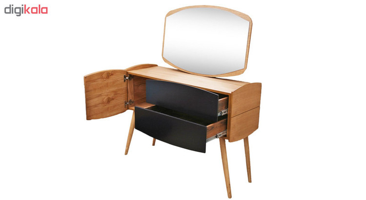 - دراور آینه دار همراه با صندلی - دارای 2 عددکشو - یک در با لولاهای آرام بند - ریل کشو ها از نوع ساچمه ای بی صدا - ضد خش - ضد رطوبت - رنگ ثابت - طول عمر بالا - بدنه بسیار مستحکم - طراحی مدرن و کلاسیک - دارای پایه های بلند زاویه دار