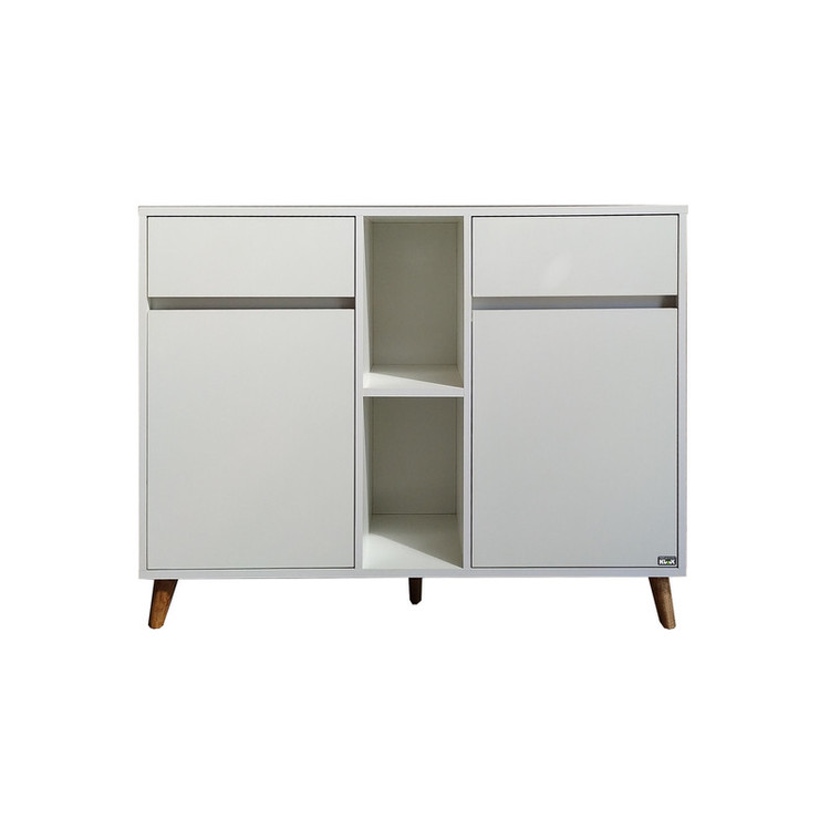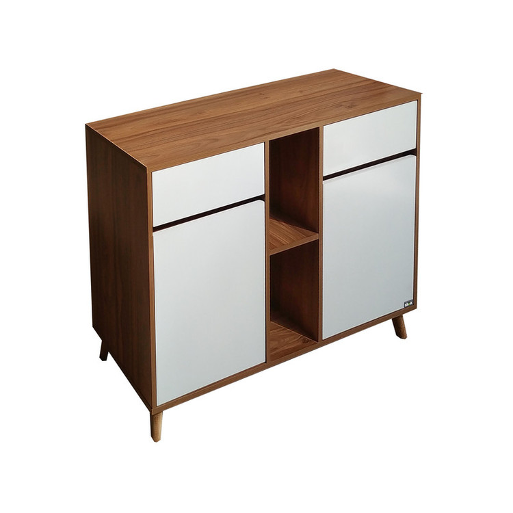 کنسول صنعت و هنر چوبی کوتوک مدل کارلو 100 با لبه های pvc شده و تولید شده با ماشین آلات تمام اتوماتیک میباشد. این محصول دارای پایه های چوبی با دو کشو ، دو باکس طبقه دار و یک باکس طبقه دار بدون درب و صفحه به طول 100 سانتیمتر، فضای کافی را برای چیدن وسایل پذیرایی و آینه و شمدان در اختیار شما قرار می دهد. جنس محصول ملامینه پویا میباشد.