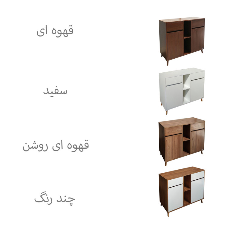 - جنس درب و بدنه ملامینه پویا - دارای 5 پایه چوبی 10 سانتی - دارای دو کشو و دو کابین و باکس بدون درب