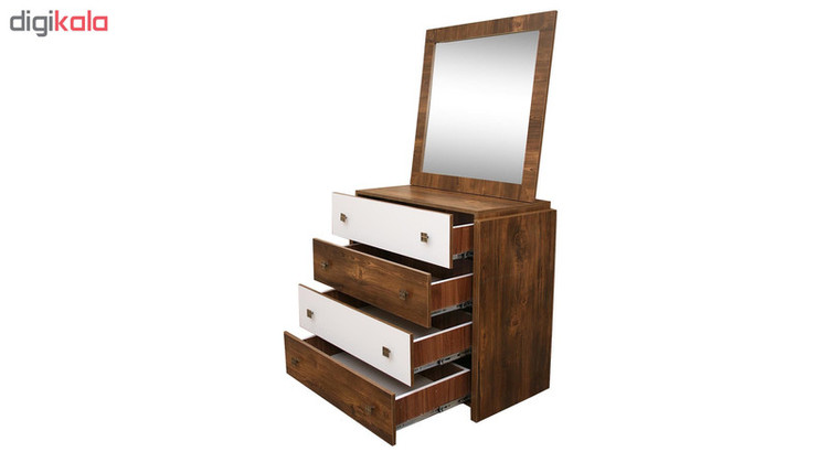 - دراور آینه دار همراه با صندلی- دارای 4 عددکشو عریض- ریل کشو ها از نوع ساچمه ای بی صدا - ضد خش- ضد رطوبت- رنگ ثابت- طول عمر بالا- بدنه بسیار مستحکم- دستگیره های کاملا فلزی با کیفیت عالی