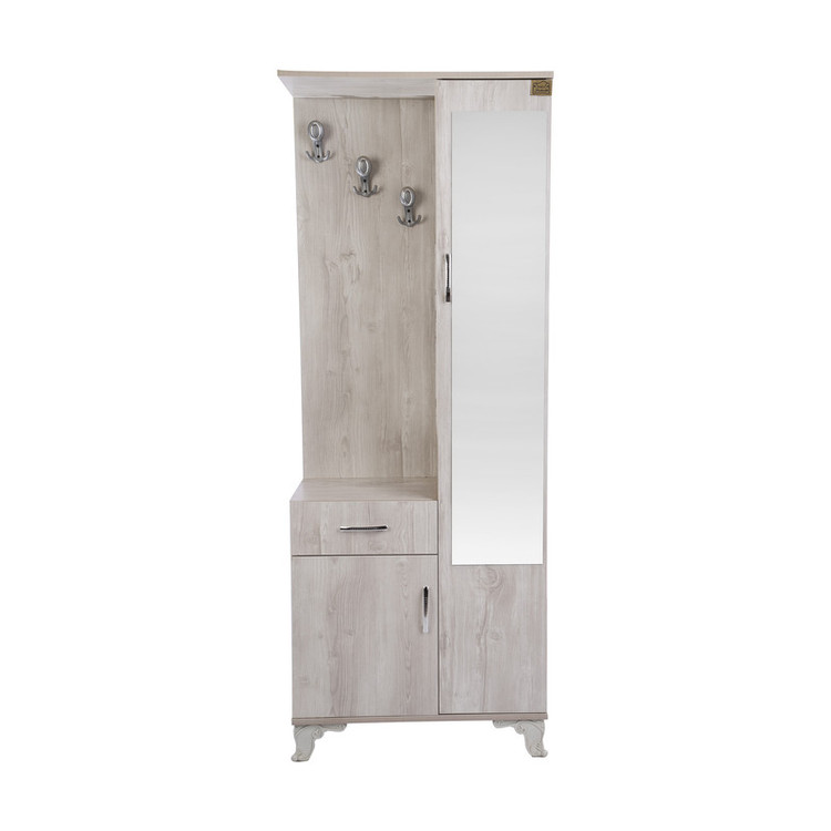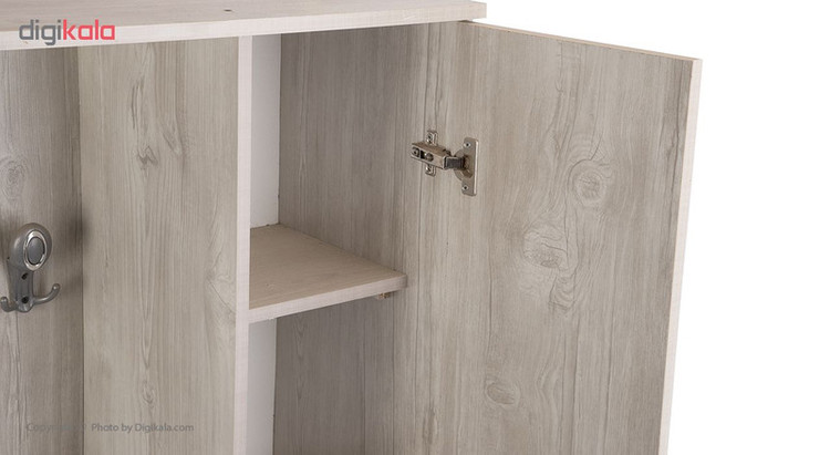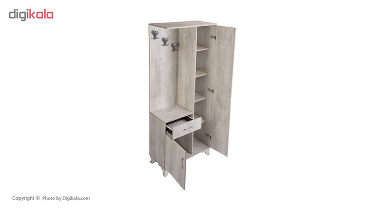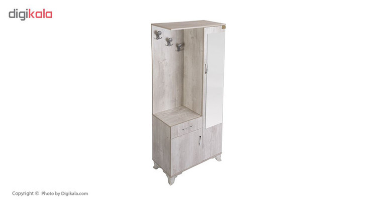 اگر قصد دارید از یک جاکفشی زیبا با طراحی مناسب برای منزل یا محیط کار استفاده کنید محصول فوق را به شما پیشنهاد میکنیم. این محصول به صورت چندکاره طراحی شده و میتوانید از آن برای آویزان کردن لباسها و قرار دادن لوازم اضافی نیز استفاده کنید. این محصول از 4 بخش مجزا تشکیل شده است. یک بخش برای آویزان کردن لباس بوده که دارای 3 قلاب است. دو بخش دیگر شامل یک کشو و یک کمد کوچک میشوند. بخش آخر نیز برای قرار دادن کفش و دیگر لوازم کاربرد داشته که خود دارای 5 طبقه است. به لطف این جاکفشی میتوانید به خوبی به کفشها و لوازمتان نظم دهید. یکی از نقاط قوت این محصول نام شرکت تولیدکنندهی آن است. شرکت شبستان که یک نام شناخته شده در تولیدات محصولات چوبی با روکش ملامینه است توانسته در این محصول نیز مانند دیگر تولیدات خود نهتنها کیفیت بالای محصول را مد نظر قرار دهد، بلکه آن را به شکلی طراحی کند که بسیار کاربردی بوده و موجب زیبایی هرچه بیشتر محیط شود. این جاکفشی ابعادی برابر 184 × 36 × 70 سانتیمتر دارد و یک آینهی قدی در بخش سمت راست آن قرار گرفته است. از دیگر مزایای این محصول میتوان به روکش ملامینهی آن اشاره کرد. به لطف این روکش، این جاکفشی طول عمر بالایی پیدا کرده است چراکه در برابر رطوبت، سایش و حرارت مقاومت بالایی دارد. شرکت شبستان این محصول را تحت عنوان مدل HG1138 به بازار عرضه میکند.