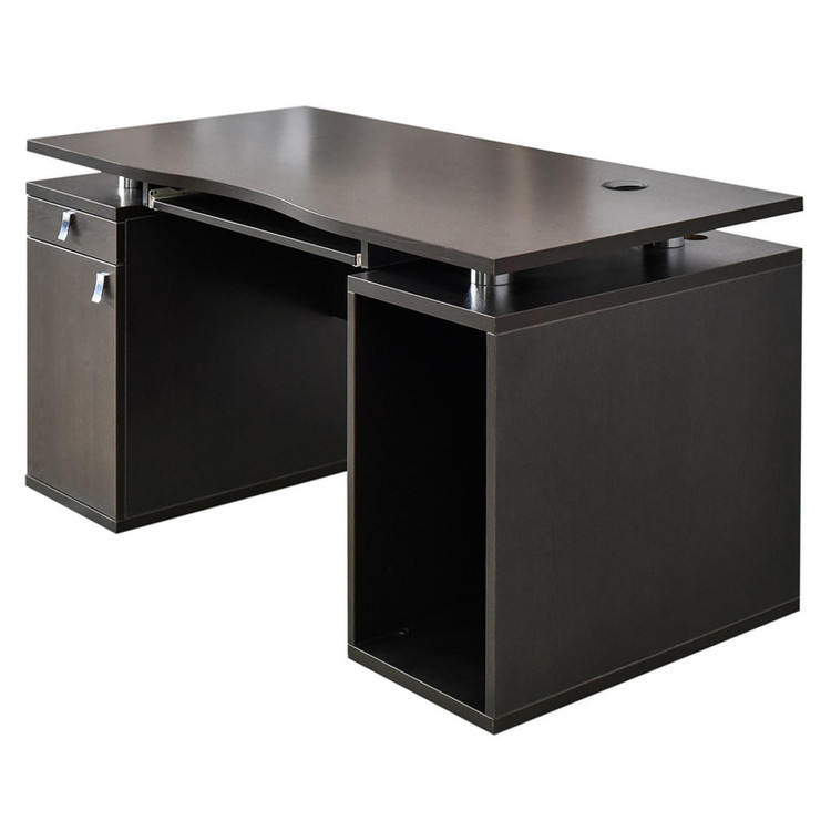 اگر به دنبال میزی هستید که هم در منزل و هم در محیط اداری کاربرد داشته باشد «میز اداری ایستا مدل IC300» را به شما پیشنهاد میکنیم. این محصول در ابعاد 1200 میلیمتر طول، 600 میلیمتر عرض و 750 میلیمتر تولید میشود. در یک سمت آن یک کشوی کوچک برای لوازم تحریر و یک کمد در دار با لولای آرامبند قرار دارد. فضای داخلی کمد تقسیمبندی شده و برای قرار دادن زونکن، کتاب و سایر لوازم اداری مناسب است و در سمت دیگر دارای جای کیس بوده که برای آن دریچه عبور هوا نیز تعبیه شده است و بر روی صفحه میز محفظه عبور سیم قرار دارد تا سیمهای متصل به کامپیوتر به راحتی از آن عبور کنند. دستگیرهها از جنس آلومینیوم و پایههای میز، فلزی و از نوع سیلندری بوده که قابلیت رگلاژ را دارد. صفحه میز از جنس ام دی اف (MDF) با ضخامت 25 میلیمتری و روکش ملامینه ساخته شده است که در زیر آن یک صفحه ریلی برای قرار گرفتن کیبورد تعبیه شده است.