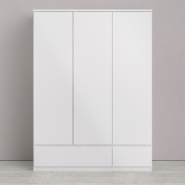 کمد لباس مدل IKE4555 جنس روکش از ملامینه میباشد و دارای سه عدد درب با لولای با کیفیت و دو عدد کشو با ریل ساچمه ای با کیفیت و در داخل کمد در سمت راست طبقات طراحی شده و در سمت چپ میله برای آویز کردن لباس طراحی شده و این کالا از استحکام و مقاومت بالایی برخوردار است و در رنگ بندی های زیبا و شکیل میباشد.