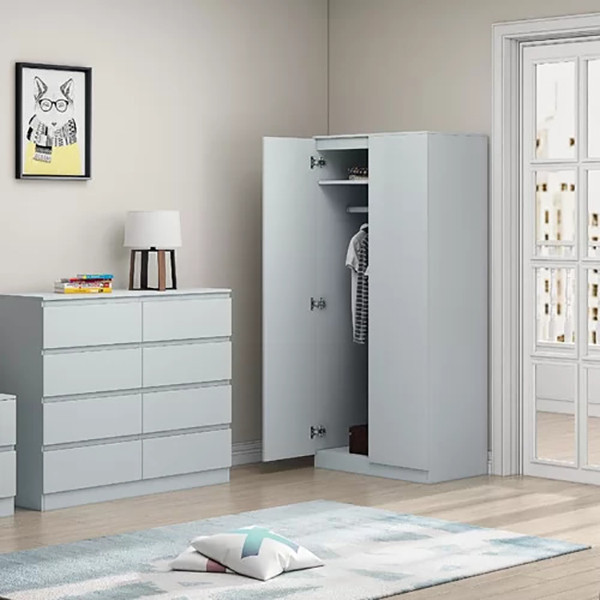 کمد لباس مدل IKE4634 جنس روکش از ملامینه درجه یک میباشد و دارای دو عدد درب با لولای آرام بند با کیفیت و نحوه باز و بسته شدن درب به صورت مگنتی میباشد و این کالا از استحکام و مقاومت بالایی برخوردار است و در رنگ بندی های زیبا و شکیل میباشد.
