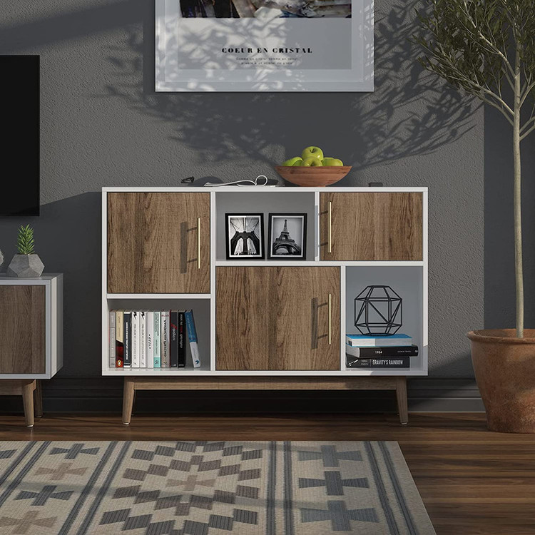 کنسول IKE 4904 جنس روکش از ملامینه ضد خش میباشد و دارای سه درب که دربها دارای لولای آرام بند باکیفیت و دستگیره های مقاوم میباشند و همچنین استحکام این کنسول جهت کالاهای دکوراتیو و کتاب و ... مناسب است. چند رنگ شامل بدنه سفید و درب های قهوه ای روشن میباشد.