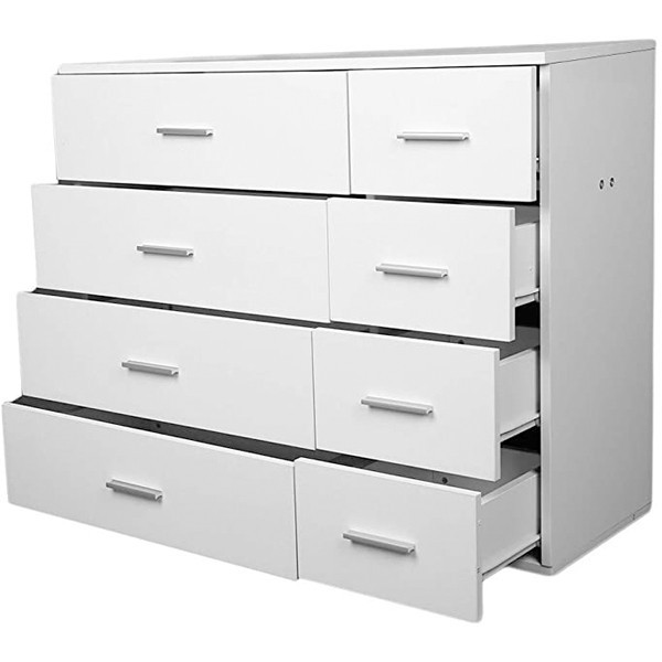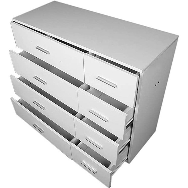 دراور هشت کشو مدل IKE457 جنس روکش ملامینه ضد خش میباشد و کشو ها با ریل ساچمه ای با کیفیت دستگیره فلزی مستحکم در سه رنگ گردویی ، سفید و آنتیک طلایی زیبا و شکیل میباشد.