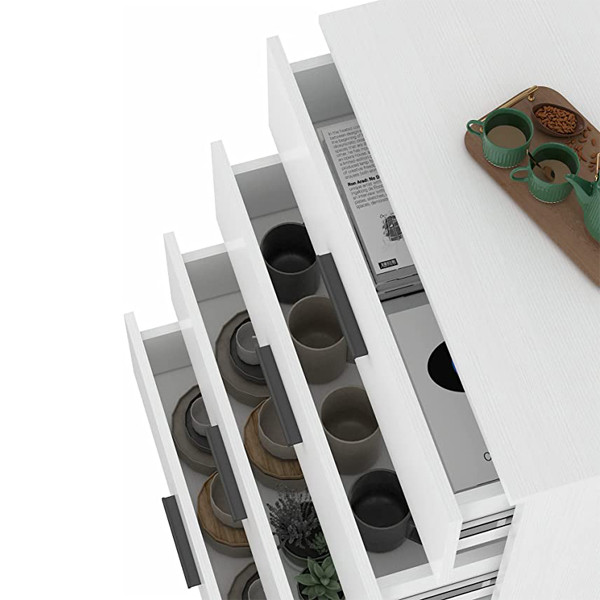 دراور شش کشو مدل IKE4848 جنس روکش ملامینه ضد خش میباشد و کشو ها با ریل ساچمه ای با کیفیت دستگیره فلزی مستحکم در سه رنگ گردویی ، سفید و آنتیک طلایی زیبا و شکیل میباشد.