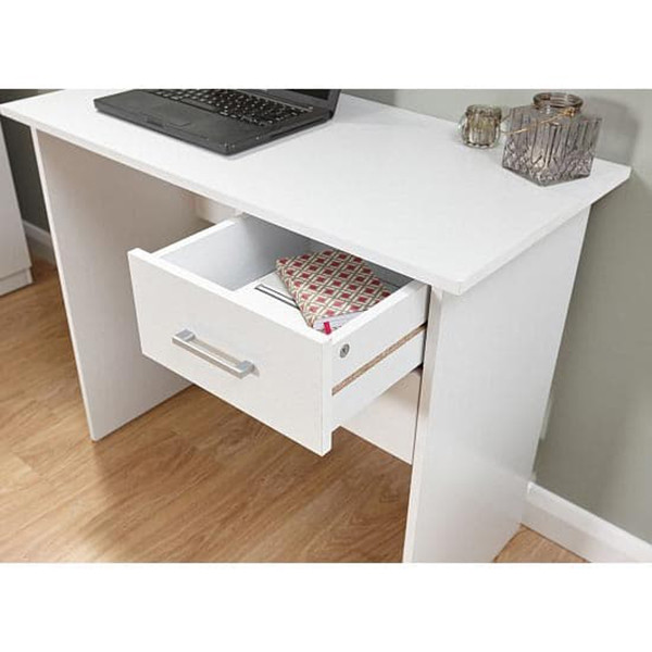 میز کامپیوتر مدل IKE4528 جنس روکش از ملامینه میباشد و دارای دو عدد کشو با ریل ساچمه ای با کیفیت و این کالا از استحکام و مقاومت بالایی برخوردار است و در رنگ بندی های زیبا و شکیل میباشد.