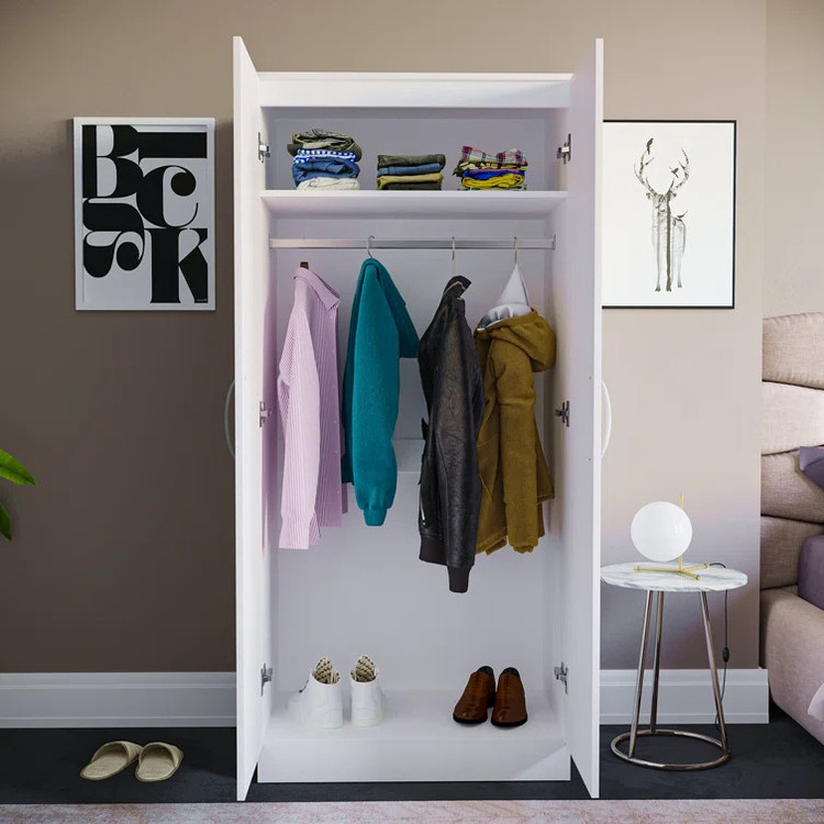 کمد لباس مدل IKE4548 جنس روکش از ملامینه میباشد و دارای دو درب با لولای با کیفیت و این کالا از استحکام و مقاومت بالایی برخوردار است و در رنگ بندی های زیبا و شکیل میباشد.