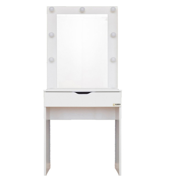 میز آرایش مدل روناک طراحی و تولید صنایع چوبی سازیما بوده و دو کشو به همراه آیینه و با قابلیت اتصال 7 لامپ می باشد که در واقع یک میز آرایش و گریم حرفه ای برای استفاده بانوان می باشد روی قاب آینه تعداد 7 عدد سرپیچ درنظر گرفته شده و سرهم بندی شده است. برای روشن کردن چراغ ها یک عدد کلید سر راهی و دوشاخه درنظر گرفته شده است.