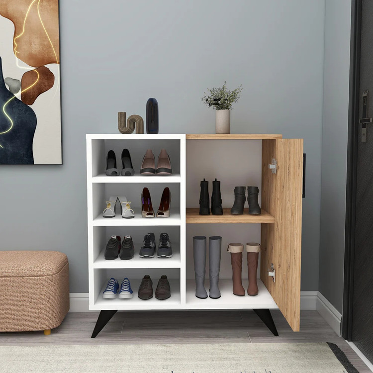 جاکفشی مدل IKE4592 جنس روکش از ملامینه میباشد و دارای یک عدد درب با لولای با کیفیت و چهار طبقه در سمت چپ کالا و دو طبقه در داخل درب میباشد و این کالا از استحکام و مقاومت بالایی برخوردار است و در رنگ بندی های زیبا و شکیل میباشد.
