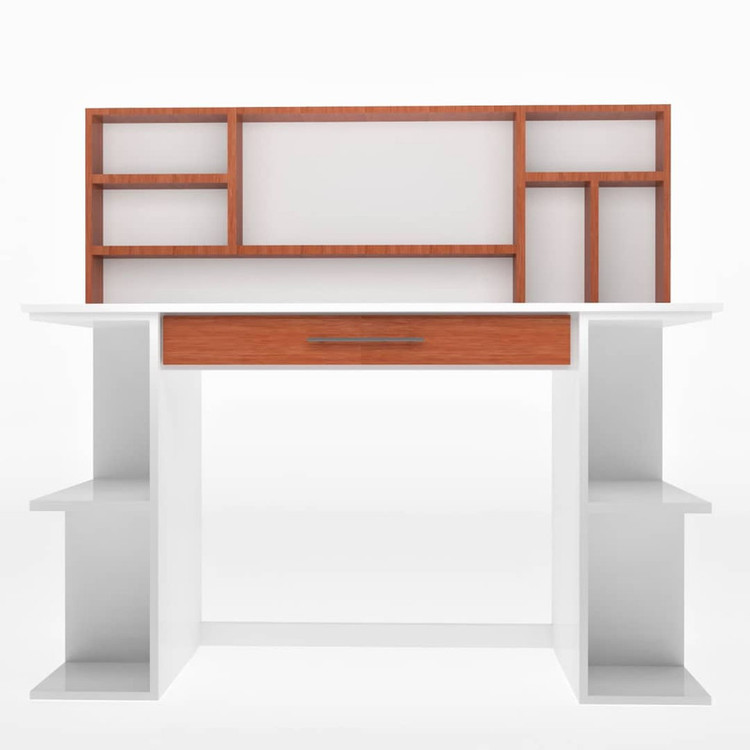 میز تحریر علاوه بر تقسیم بندی پایه ها شامل یک کتابخانه در قسمت بالا میز هست و امکان چیدمان حداکثری را به شخص میدهد،عرض 25 سانتی پایه ها استحکام قابل قبولی به میز داده واز لق زدن آن جلوگیری میکند .