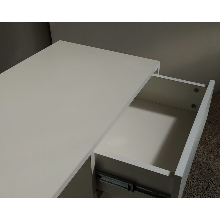 - جنس درب و بدنه ملامینه پویا - دارای 5 پایه چوبی 10 سانتی - دارای دو کشو و دو کابین و باکس بدون درب