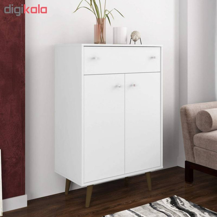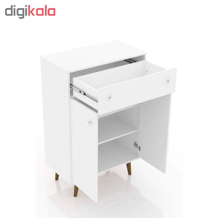 جاکفشی مدل S1 طراحی وتولید شده در شرکت ماد دارای یک محفظه مجزاکشو در قسمت بالا جهت قرار دادن لوازم مربوط به کفش و سه طبقه جهت چیدمان کفش میباشد.در ضمن پایه هاازجنس چوب راش بوده که بصورت مخروطی در زیرمحصول بکاربرده رفته است.توجه داشته باشید که جنس تمامی بدنه از MDF ترک میباشد.