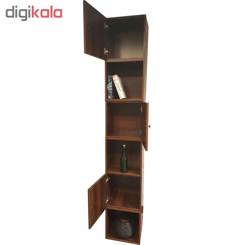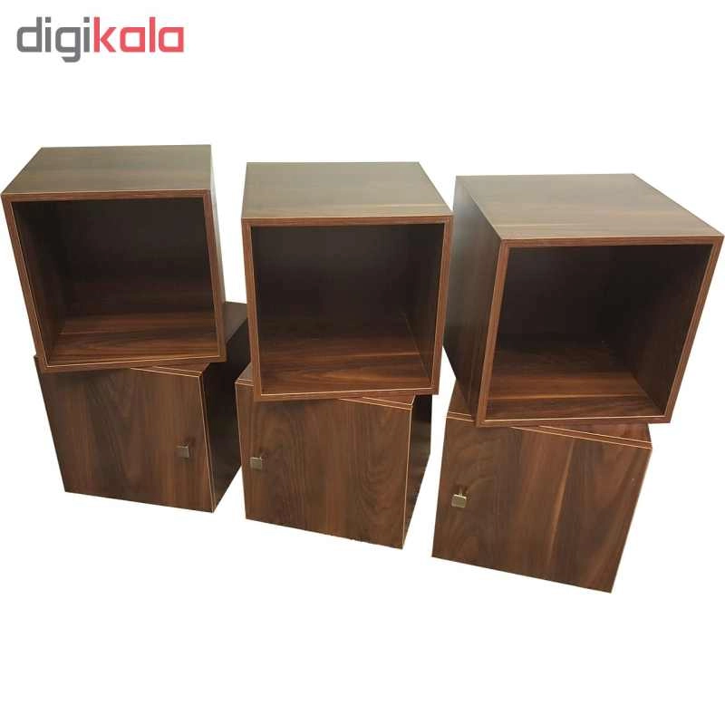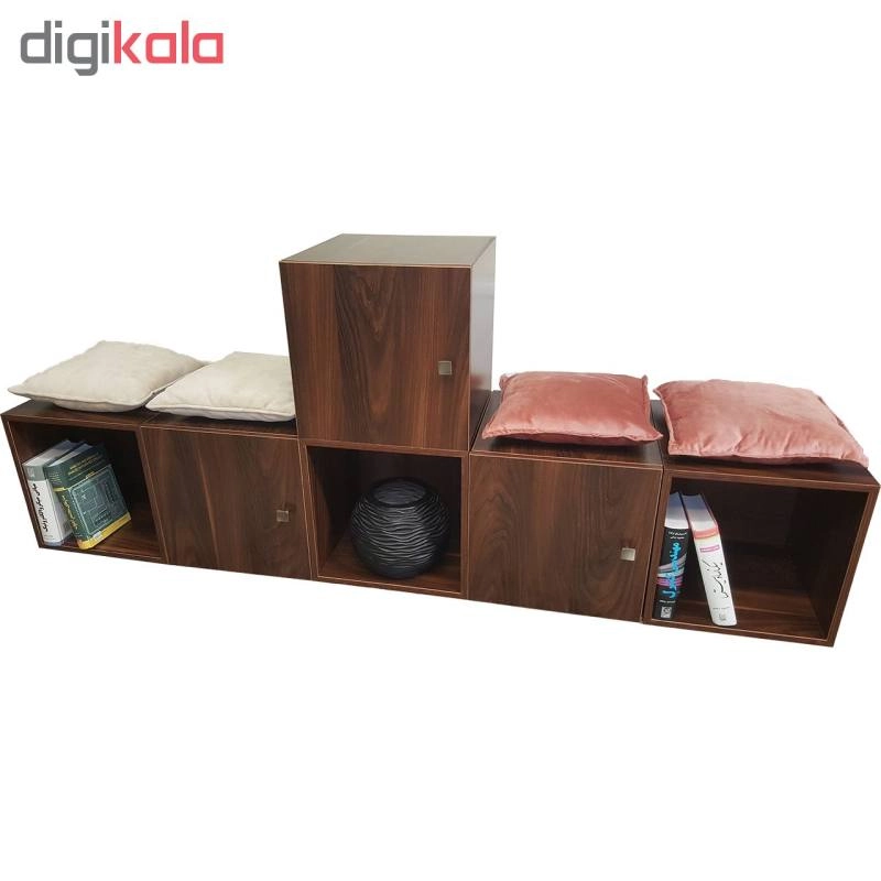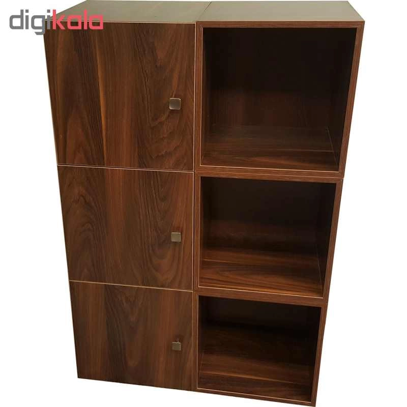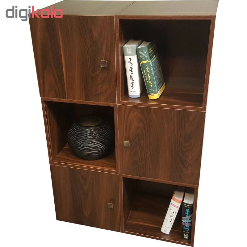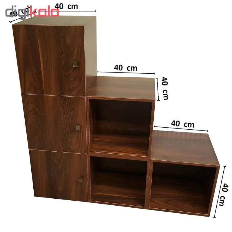 کتابخانه ای که ملاحظه می کنید از 6 عدد باکس کاملا مجزا از یکدیگر تشکیل شده که به شکل های مختلف می توان آن را چیدمان کرد ، ابعاد هر یک عدد باکس 40 × 40 × 40 می باشد. 3 عدد از این باکس ها دارای درب بوده و 3 عدد بدون درب می باشد. کاربری این محصول بسیار زیاد بوده و می توانید از آن در سالن پذیرایی منازل ، اتاق خواب ، دفاتر کار ، ویترین مغازه ، اتاق کودک و .... جاهای مختلف استفاده کنید. به دلیل مجزا بودن هر باکس از یکدیگر میتواند به شکل های بسیار متنوعی آن را چیدمان کنید. میتوانید از آن به عنوان یک کتابخانه ، میز تلویزیون ، قفسه دکوری تزئینی و .... تلفیقی از همه این موارد استفاده کرد. جنس به کار رفته در این محصول از بهترین نوع MDF موجود در بازار بوده و تمامی لبه ها از بهترین جنس PVC استفاده شده ، تمامی لولا ها و دستگیره ها از مرغوبترین متریال موجود در بازار مورد استفاده قرار گرفته است. این محصول بی نیاز از مونتاژ توسط خریدار بوده و کاملا آماده استفاده می باشد.