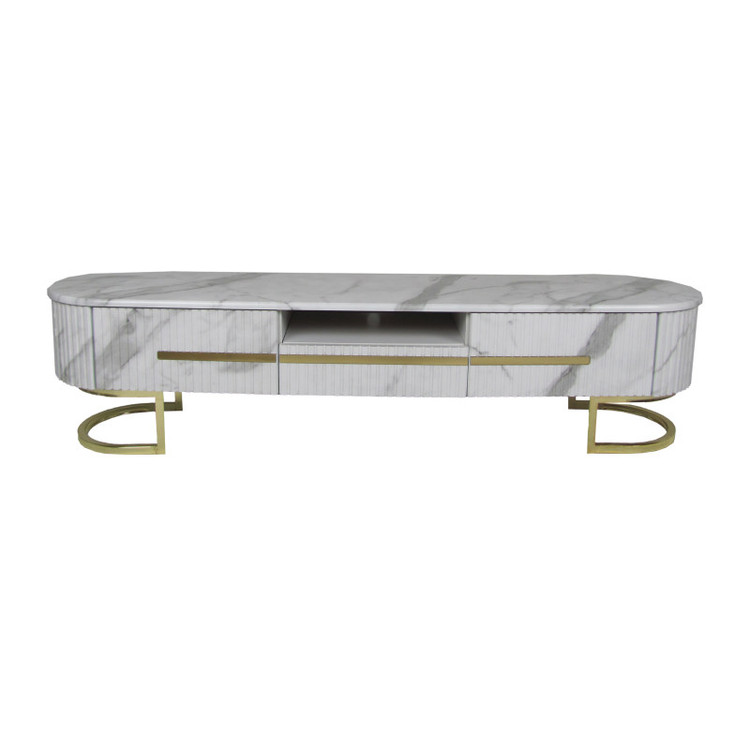 میز تلویزیون سری TS201 از متریال درجه یک موجود در بازار ساخته شده است. بدنه از جنس MDF و روکش وکیوم درجه یک ساخته شده و کشوها دارای ریل و مگنت می باشند. همچنین استفاده از پایه های فلزی طلایی رنگ موجب زیبایی این سری میز تلویزیون می گردد.