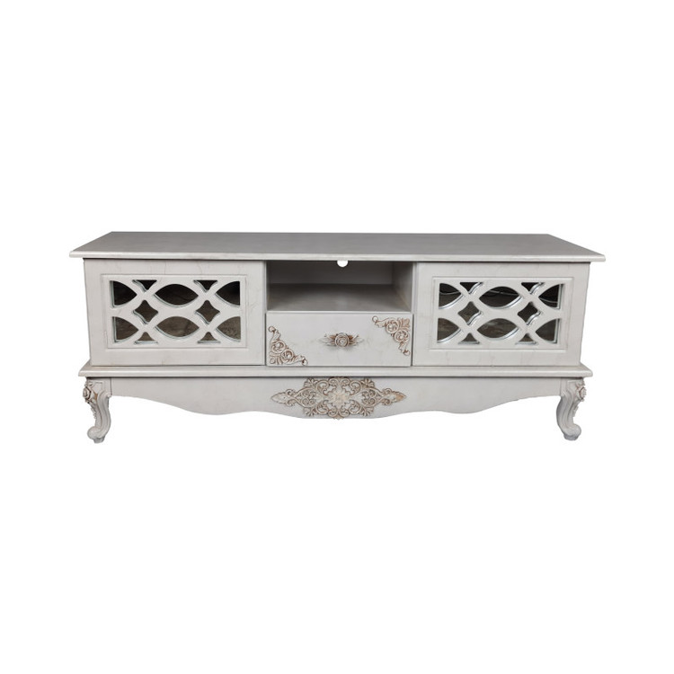 میز تلویزیون سری TS201 از متریال درجه یک موجود در بازار ساخته شده است. بدنه از جنس MDF رنگ شده درجه یک ساخته شده؛ کشو دارای ریل می باشند. همچنین استفاده از پایه های منبتی موجب زیبایی این سری میز تلویزیون می گردد.