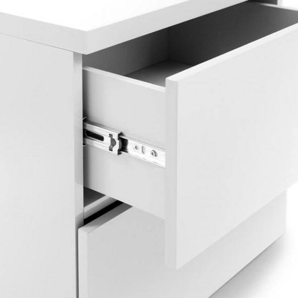 - میز پاتختی طراحی کاربردی و شیک - دارای دو کشو ریل ساچمه ای - ریل کشو از نوع ساچمه ای سه زمانه - ضد خش - ضد رطوبت - رنگ ثابت