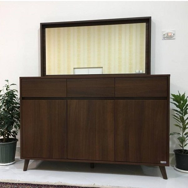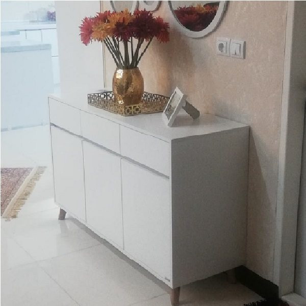 - جنس درب و بدنه ملامینه پویا - دارای 5 پایه چوبی 10 سانتی - دارای سه کشو و سه کابین
