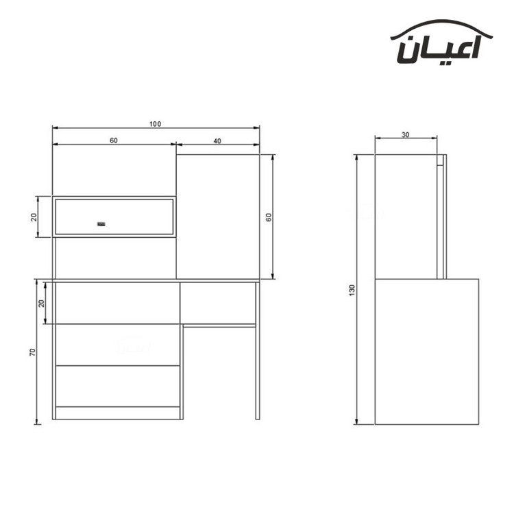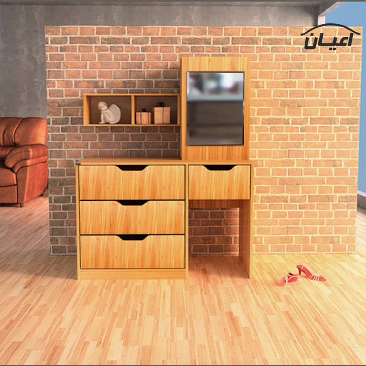 میز آرایش اعیان.جنس ملامینه.سطح ضدخش.طراحی ساده و کاربردی.وزن متناسب با ابعاد.تحمل وزن متناسب با ابعاد و به صورت استاندارد.در رنگ های متنوع.بسته بندی با لوگو و برند اعیان.دارای چهار کشو و یک فضای کمدی مجزا درب ریلی. دارای باکس بغل آینه. xتنها در صورتی کالای انتخابی مطابق با تصاویر و مشخصات درج شده خواهد بود که هنگام انتخاب فروشنده، فروشنده رسمی برند اعیان یعنی اعیان دکورا که با تیک آبی مشخص شده است را انتخاب نمایید. xهنگام خرید و دریافت کالا به بسته بندی و لوگوی برند اعیان دقت فرماییدx