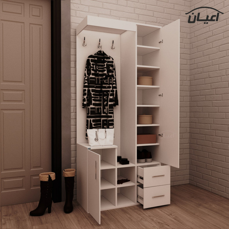 جاکفشی اعیان.جنس ملامینه.سطح ضدخش.طراحی ساده و کاربردی.وزن متناسب با ابعاد.قابل استفاده در منزل و محل کار.دارای دو درب کمدی.و دارای 2 کشو .و دارای 2فضای مجزا.دارای آینه میباشد.دارای فضای آویز لباس.تحمل وزن متناسب با ابعاد و به صورت استاندارد.در رنگ های متنوع.بسته بندی با لوگو و برند اعیان می باشد.هنگام خرید و دریافت کالا به بسته بندی و لوگوی برند اعیان دقت فرمایید xتنها در صورتی کالای انتخابی مطابق با تصاویر و مشخصات درج شده خواهد بود که هنگام انتخاب فروشنده، فروشنده رسمی برند اعیان یعنی اعیان دکورا که با تیک آبی مشخص شده است را انتخاب نمایید. xهنگام خرید و دریافت کالا به بسته بندی و لوگوی برند اعیان دقت فرمایید
