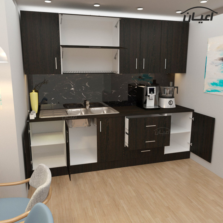 مجموعه کابینت های زمینی و کابینت های هوایی.دارای صفحه یک تکه. دارای پاخور یک تکه. دارای یونیت و سبد آبچکان. یونیت ها در ابعاد : دو یونیت تک درب 50 یونیت سه کشو 70 یونیت سینک 90 میباشد. سینک ندارد و به دلیل متنوع بودن ابعاد سینک،جای سینک روی صفحه تعبیه نگردیده است. بسته بندی با لوگو و برند اعیان.هنگام خرید و دریافت کالا به بسته بندی و لوگوی برند اعیان دقت فرمایید.