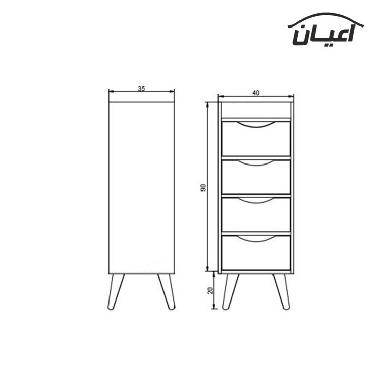 جنس ملامینه وزن مناسب با ابعاد. چهار کشو بازشو ریل سه تکه