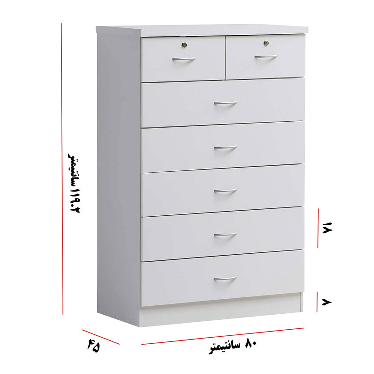 امروزه دراور چوبی به سبب کارایی مطلوب و زیبایی در چیدمان، یک وسیله ضروری در دکوراسیون داخلی محسوب میشود. دراور، در طرح و رنگهای مختلفی وجود دارد که کاربرد اصلی آن در مرتبسازی و طبقهبندی لباسها و دیگر وسایل است. دراور چوبی با توجه به مدل و کاربری آنها در فضاهای مختلف قابل استفاده هستند. ویژگیهای اصلی یک دراور کشوهای متعددی است که به صورت افقی وجود دارد و میتواند به وسایل شما سرو سامان بدهد. دراور میتواند به تنهایی در دکوراسیون منزلتان استفاده شود یا جزئی از میز آرایش و میز کنسول باشد. به همین خاطر اگر فضای محدودی در اختیار دارید، میتوانید برای استفاده بهینه از فضای اتاق، میزی را خریداری کنید که دراور با میزهای آرایش یا کنسول ترکیب شده باشد و در فضای ورودی خود میتوانید از دراورهایی که کاربری جا کفشی دارد استفاده کنید. دراور هفت کشو مدل ایلدا بسیار جادار و زیبا با استفاده از یک ظاهر مدرن میتوانید رنگ مورد نظر خود را مطابق با دکوراسیون خود انتخاب کنید، جنس دراور از لترون و ریل و اتصالات آن کاملا مهندسی ساخته شده است و باعث میشود برای سالهای طولانی دوام داشته باشد. این دراور هفت کشو در قسمت بالایی دارای دو کشو قفل دار است. هر کشو برای تحمل وزن بالا در زیر کفه از قیدهای اضافه برخوردار است و این امر کشوها را محکم میکند.