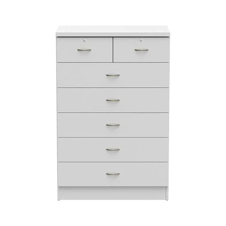 کشو های جادار جنس تمام لترون درجه یک دراور 7 کشو ابعاد کمجا و با استحکام بالا جنس تمام لترون درجه 1 ریل غلتکی سفید درجه یک لبه های کار پی وی سی یراق آلات درجه یک