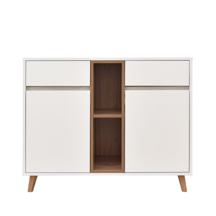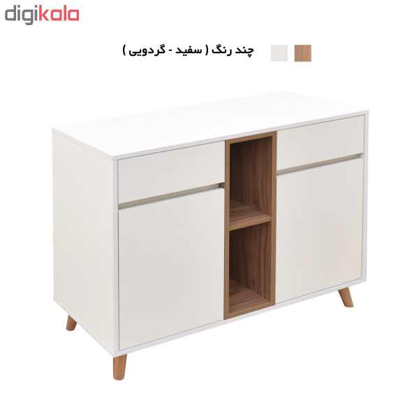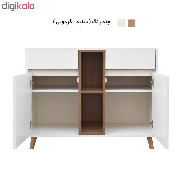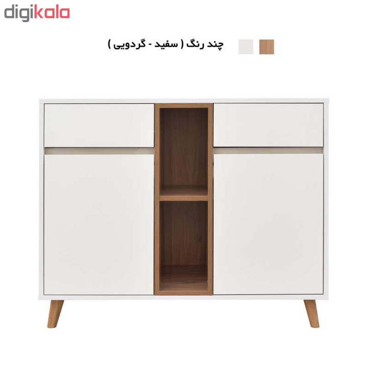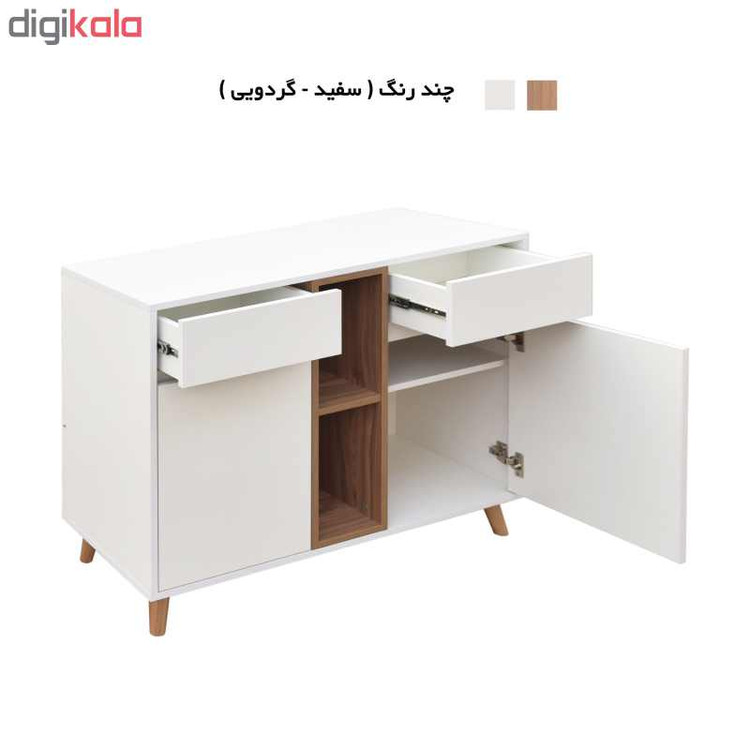 کنسول مدل کارلو با لبه های pvc شده و تولید شده با ماشین آلات تمام اتوماتیک میباشد. این محصول دارای پایه های چوبی با دو کشو ، دو باکس طبقه دار و صفحه به طول 100 سانتیمتر ، وهمچنین یک باکس بدون درب، فضای کافی را برای چیدن وسایل پذیرایی و آینه و شمدان در اختیار شما قرار می دهد.
