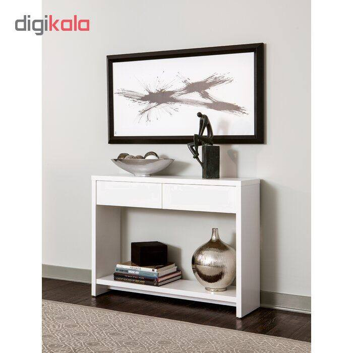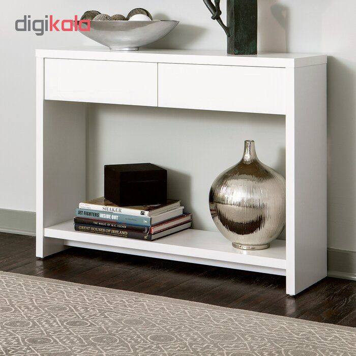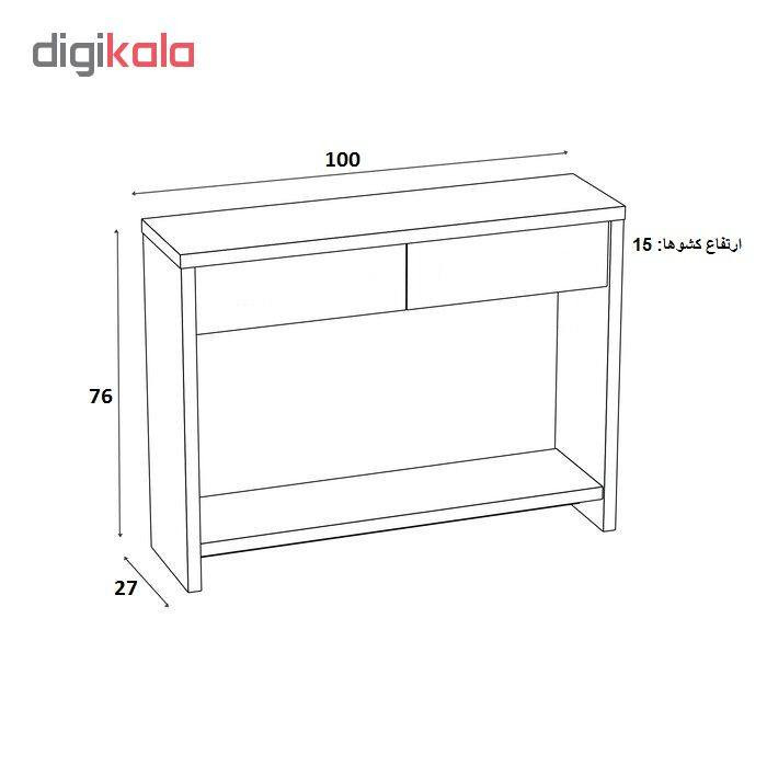 از مزایای کنسول ها اینست که جای خیلی کمی اشغال میکنند و در مقابل زیبایی خاص و بالایی را به منزل اضافه میکنند . میز کنسول K4 با طراحی مدرن و مینیمال برای اتاق نشیمن ، ورودی راهرو ، اتاق خواب و یا هر بخشی از منزل که تمایل دارید مناسب است . جنس این کنسول برخلاف مدل های مشابه از نئوپان ملامینه نیست و تماما از بهترین نوع ام دی اف ( MDF ) ساخته شده است و ضخامت تمام قطعات از MDF دوبل 32 میلیمتر است که باعث استحکام و عمر بالای آن میشود . این مدل دارای 2عدد کشو و یک عدد طبقه32 میلیمتر برای جایگذاری وسایل و دکوری است . لبه های این محصول با دستگاه های پیشترفته صنایع چوب PVC شده است و گوشه ها با ظرافت تمام فارسی و مونتاژ شده است .